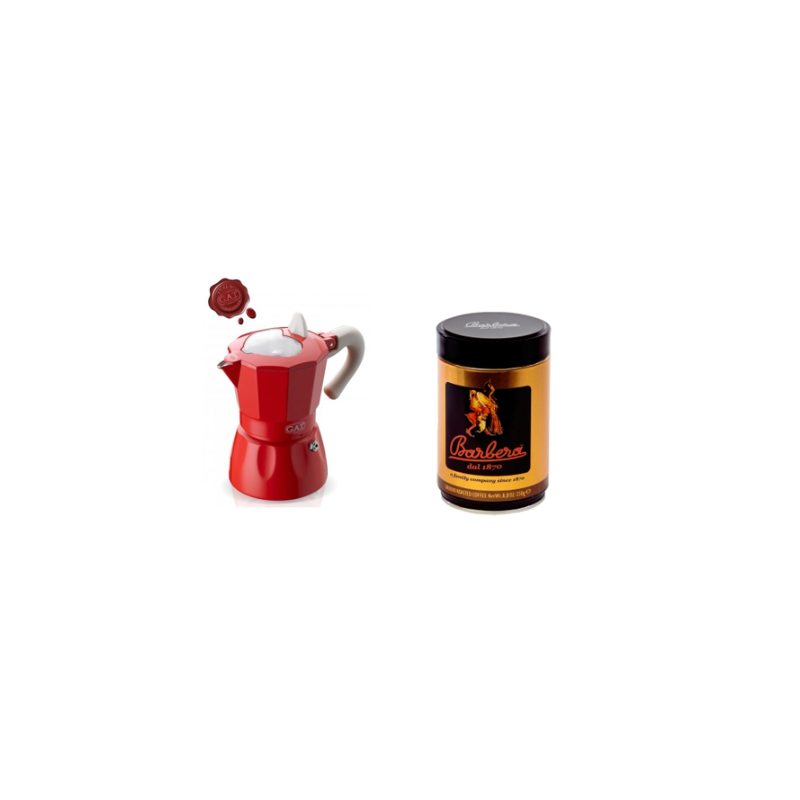 Red aluminum G.A.T. moka coffee maker for traditional Italian coffee preparation with excellent aroma and unique taste.
