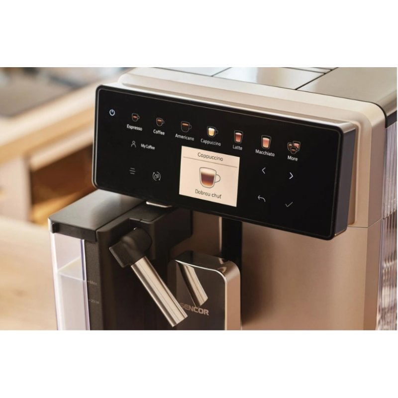 moreObjevte 6 nápojů, vše na dosah ruky, a vyzkoušejte dokonalý zážitek : ristretto, espresso, espresso lungo, káva, americano, teplá voda. Vyspělá technologie, která se díky širokému displeji zjednodušila, má všechna potřebná nastavení. Přizpůsobený vašim potřebám, jednoduchý, intuitivní a dostatečně podrobný, vás provede všemi funkcemi.